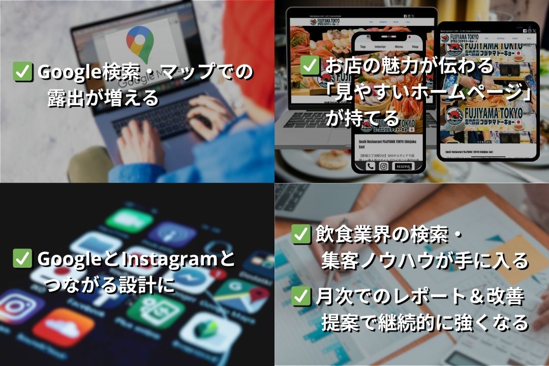 ✅ お店の魅力が伝わる「見やすいホームページ」が持てる